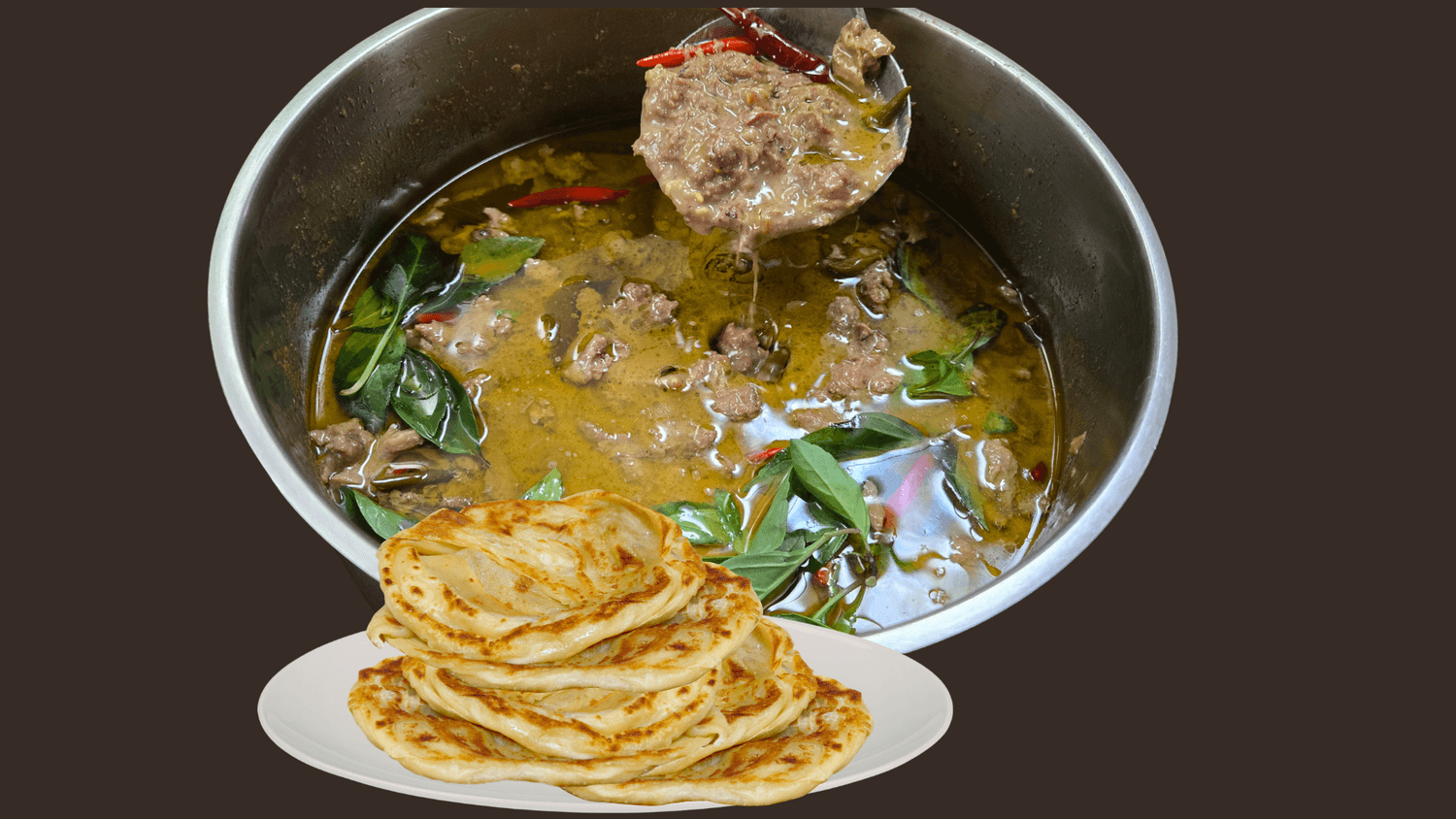 I fried Roti, the Indian-style flatbread, which pairs beautifully with Green beef curry.